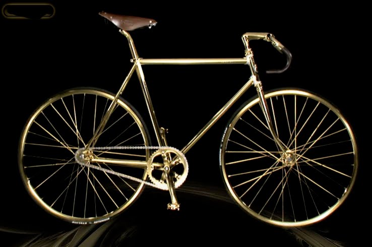 Com um design extravagante faz uso do ouro e pedras preciosas, transformando assim a bicicleta em uma peça de arte para colecionadores um objeto de luxo. Ou seja, para quem tem muitooooooo dinheiro e não sabe mais com o que gastar.